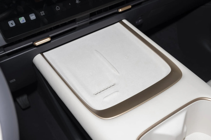 进入车内,虽然也是极简设计,看起来一点也不“日产”, 但车门内部、水杯架、空调出风口造型等等方面,N6的设计都与N7不同,整体会更年轻化一些。不过座椅方面,N6还是保持了日产的传统,整体是偏软的,且高配车型也会提供加热、通风、记忆以及按摩功能。